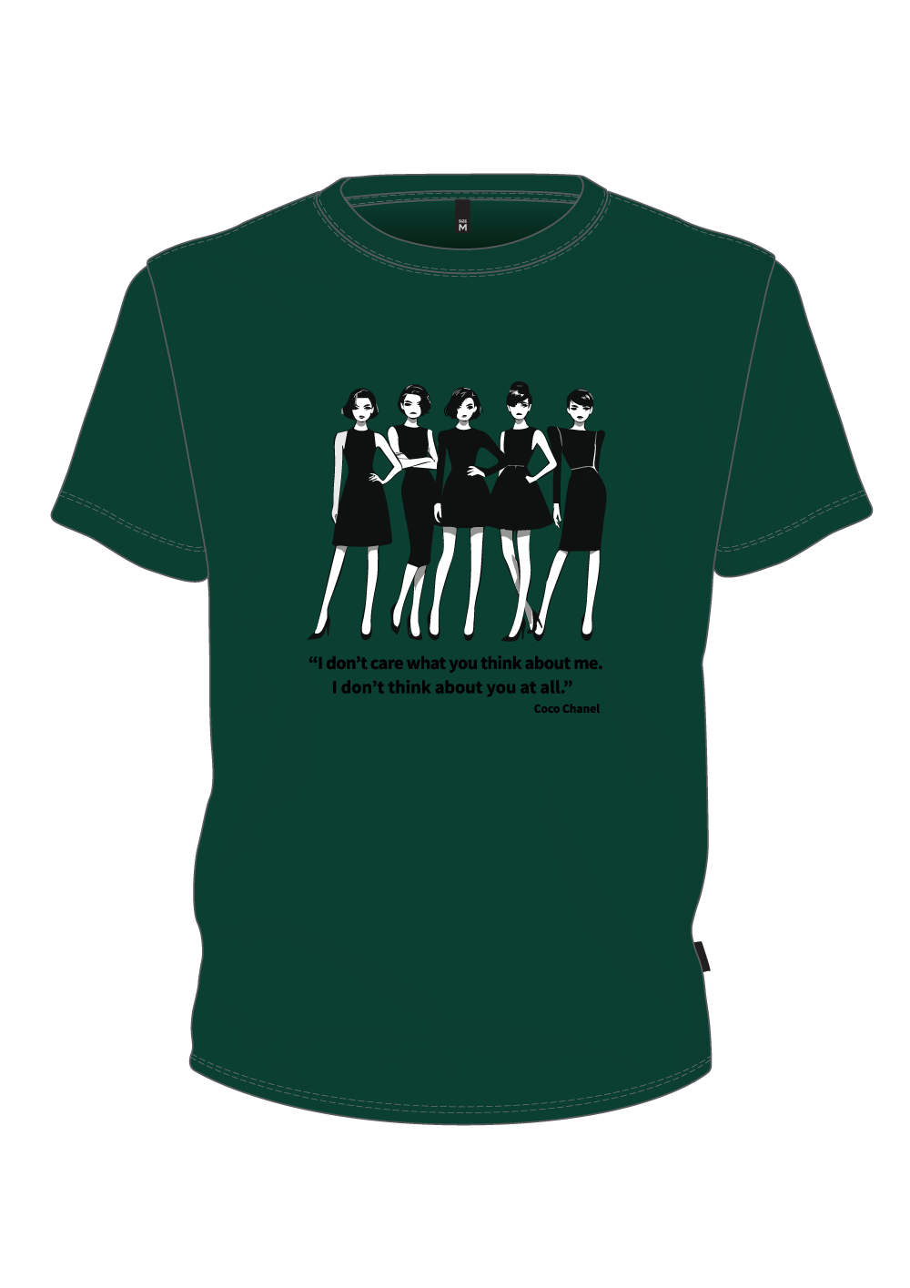 Coco Chanel känner vi som en av efterkrigstidens mest uppmärksammade modeskapare där hennes ”den lilla svarta” revolutionerade hela modevärlden. Hon är också känd för att gå sin egen väg även fast det ibland ledde till moraliska tveksamheter. Hon levde dessutom 37 år av sitt liv på Hotel Ritz i Paris, bara det kvalar in för en T-shirt!